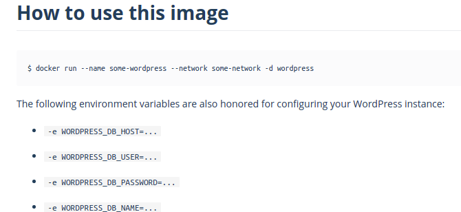 도커허브에 들어가보면 이 이미지들을 어떻게 사용할 수 있는지 가이드들이 나와있다. How to use this image가 적혀져있는 곳을 보면 환경변수들을 지정할 수 있다.