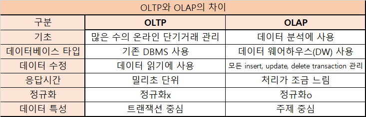 * OLTP : 온라인 트랜잭션 처리(Online transaction processing)