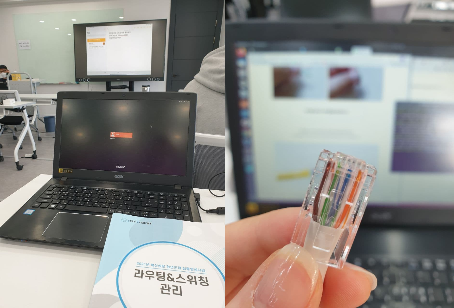 USB로 베어메탈 환경에서 OS 설치하는 것 부터 기본적인 네트워크 개념과 패킷 트레이서 프로그램을 통해 어떻게 패킷이 흘러가는지, 그리고 랜선만들기도 해보며 알차게 시간을 보냈다. 하루에 풀데이로 전념하다보니 정말 많은 지식들이 쌓였다.