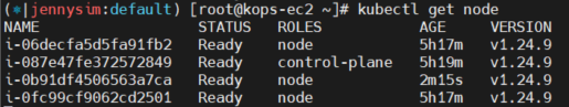 이후 kops update를 완료해준 뒤 kubectl get node를 입력해주면 수분 이후에 node수가 증가한 것을 확인할 수 있습니다.
